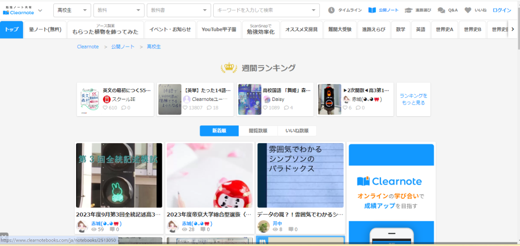 上の高校生のタブから見たいものを選ぼう!