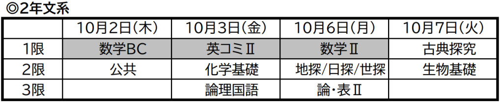 | 40 | 822~862 | 3年1学期 課題考査 |
